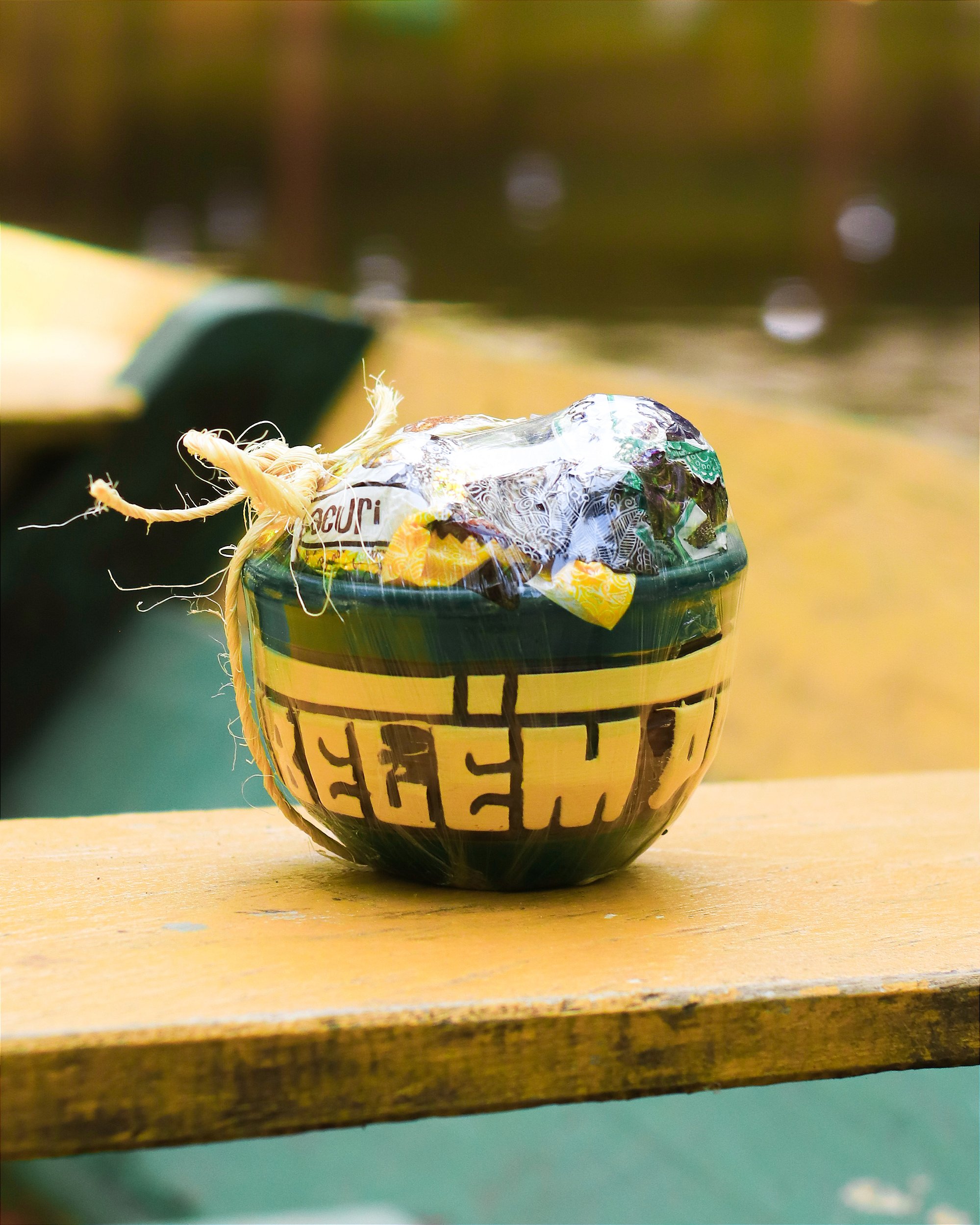 Uma linda cerâmica com iconografia marajoara e/ou Icoaraciense contendo 6 deliciosos bombons com recheios regionais. Esse o presente ideal para os amantes de chocolate e apreciadores dos sabores paraenses.